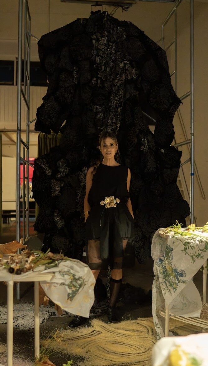 Cada pieza, cada gesto técnico y cada textura, forma parte de una coreografía material donde lo técnico y lo poético conviven. En Paisajes Ambulantes, vestir no es cubrirse: es habitar una historia, cargar un fragmento de mundo, volverse topografía.