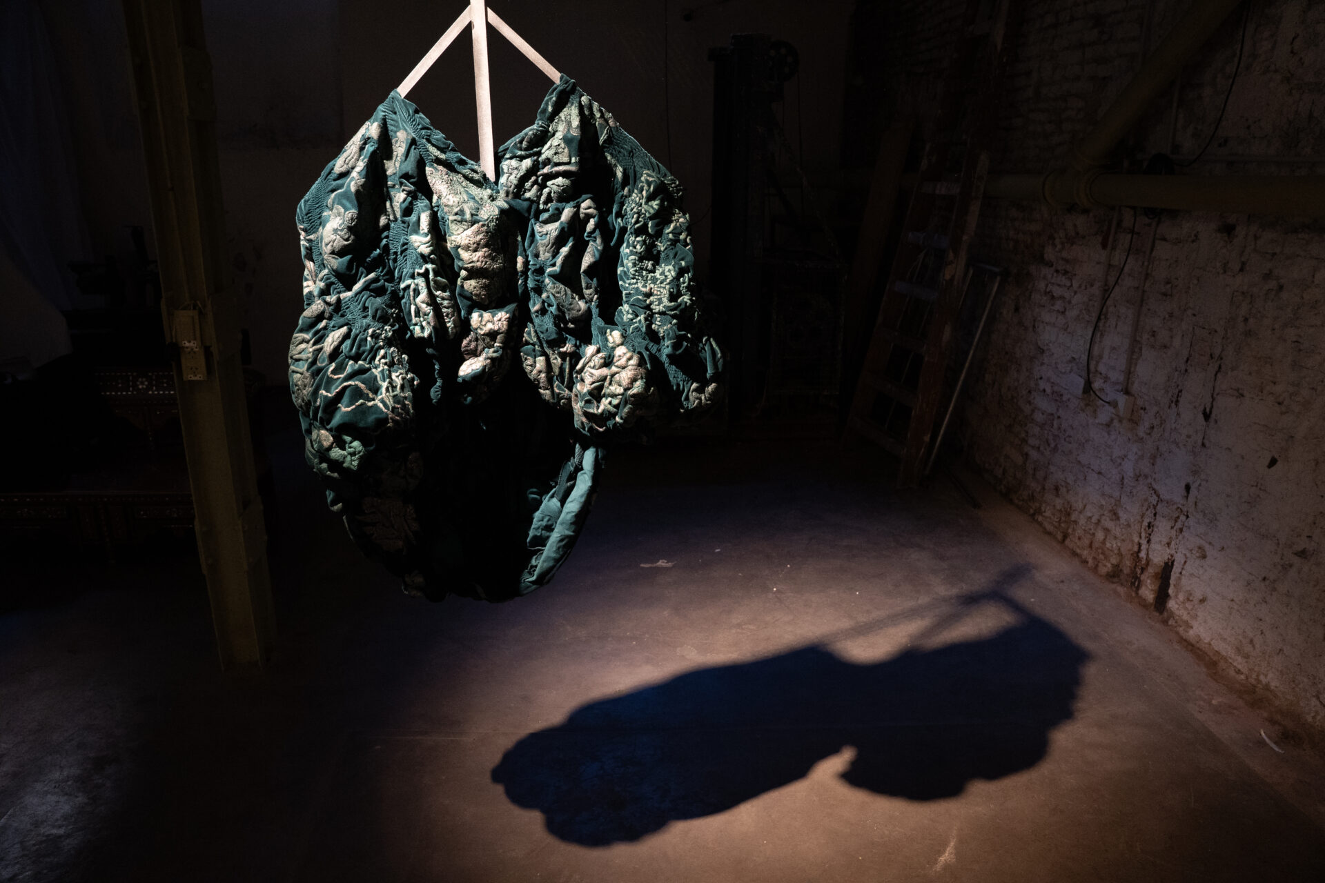 Mantos que evidencian diferentes estadíos del trabajo de Guillermina: suavidad conviviendo con texturas ásperas y rugosas, incertidumbres y descubrimientos al mismo tiempo. Flores feroces escondidas en su aparente inocencia. Un jardín blando de cuerpos textiles que no buscan adornar, sino transformar.